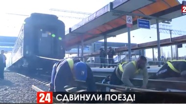 ВИДЕО: Вижте как трима руски здравеняци дърпат 600-тонен влак в Крим